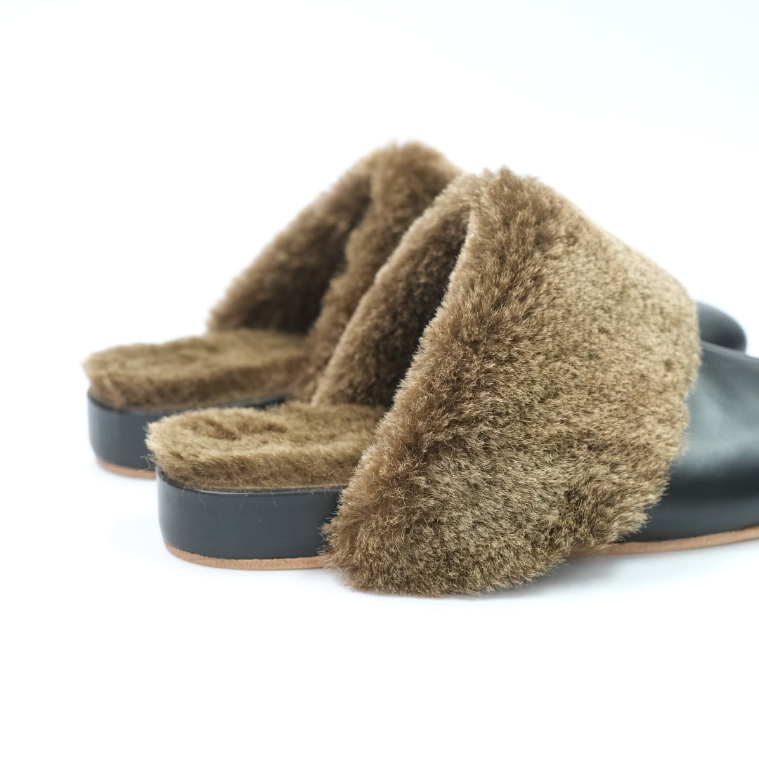SAMPLE SALE * room shoes mouton / black×brown 38 (25〜25.5cm)
