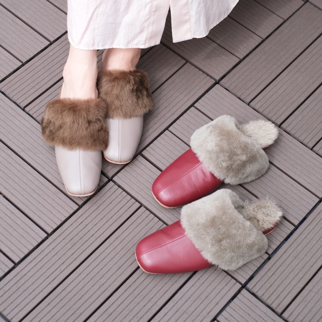 ムートンは天然素材のため調湿性がありベタつきを抑えて、さらっとした履き心地で過ごせます。ぜひ素足でお履きになってください。