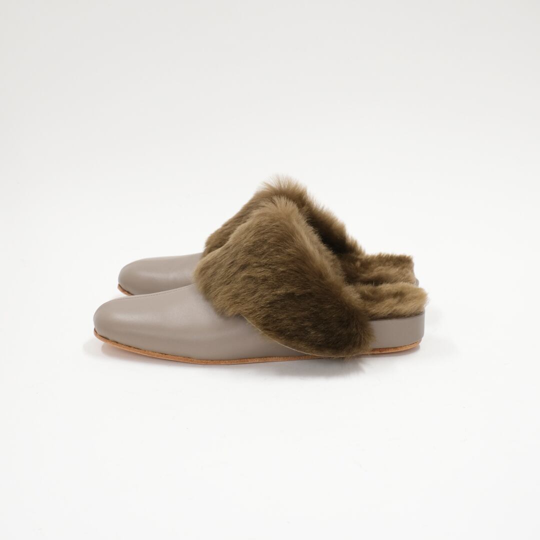 SAMPLE SALE * room shoes mouton / darkbeige×brown 35 (22〜22.5cm)